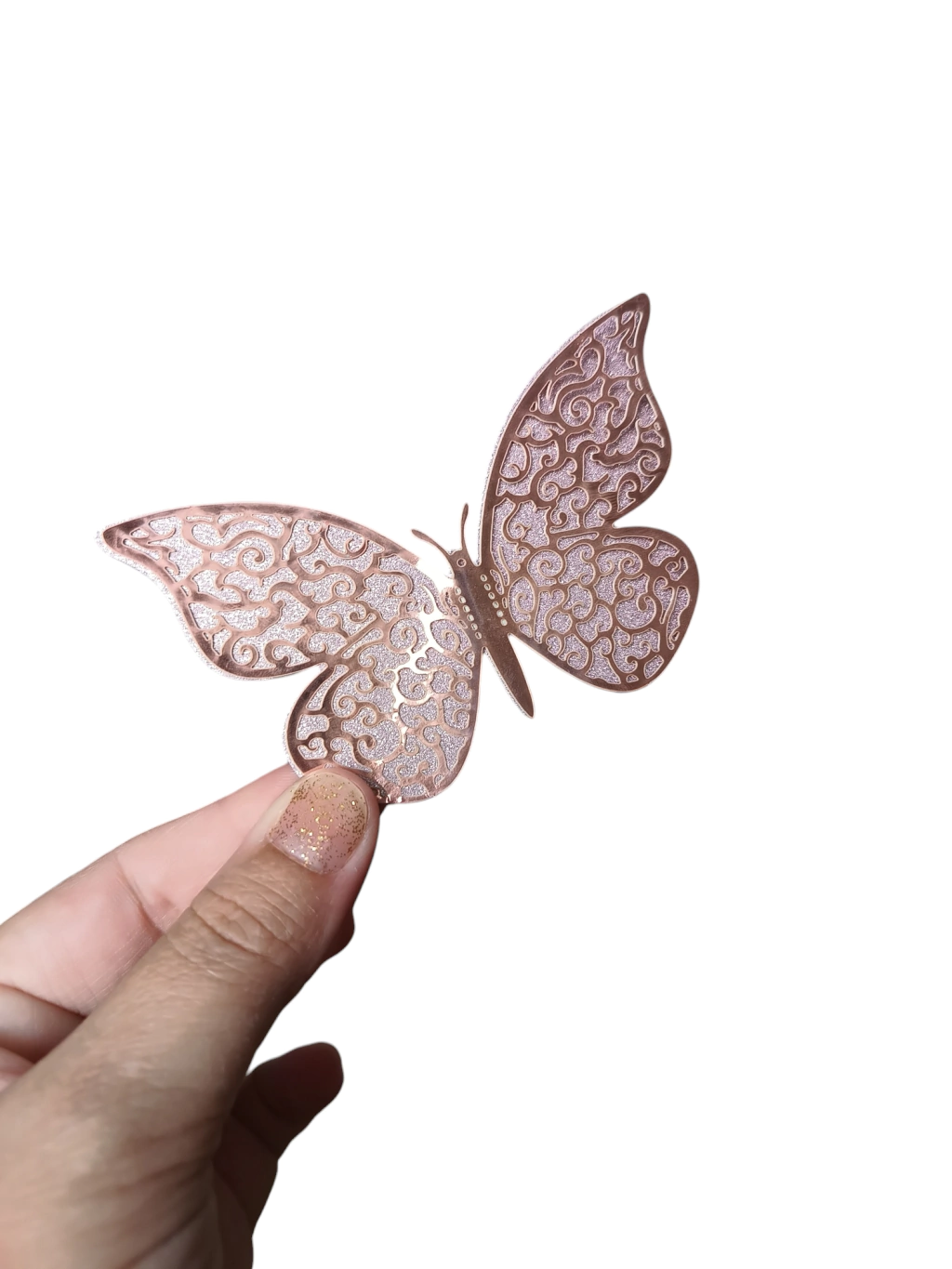 - Pack 12 mariposas caladas en papel metalizado de varios colores en el mismo pack.