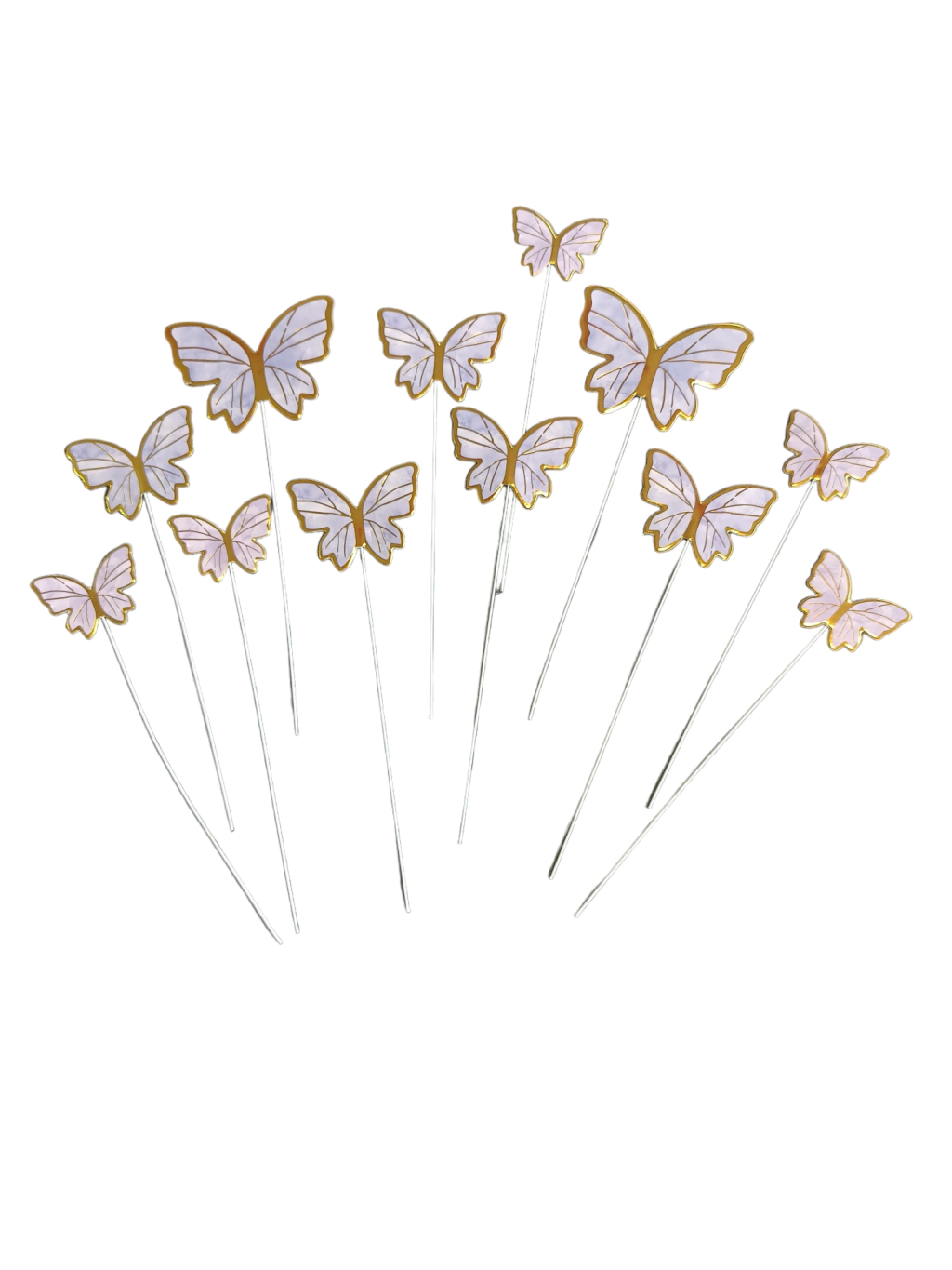 | Tipo de adorno | Mariposas Decorativas para tortas x 12 en varios tamaños |