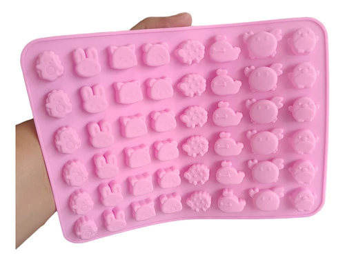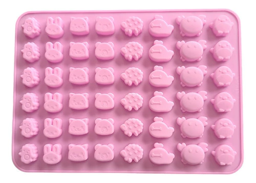 - Molde de silicona de 48 cavidades para realizar mini gomitas, chocolate, caramelo en forma de animales: Conejo, Gato, oso, Tortuga, Ballena, Cangrejo, Pinguino, tal como se observa en las imágenes.