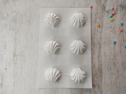 - La placa es para 6 bombones, la medida aproximada de cada ostra es de: 3 cm de alto x 3 cm de ancho.