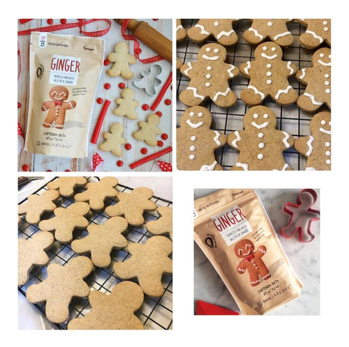 - La premezcla para preparar Galletas de Jengibre, solo necesita huevo, manteca y agua, tal como lo indica las instrucciones en el dorso de la bolsita.