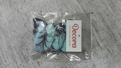 - Todas las mariposas del paquetito son de la misma trama de colores.